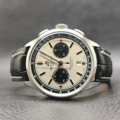 Premier B01 Chronograph 42 Stainless Steel / Silver / Croco / Folding